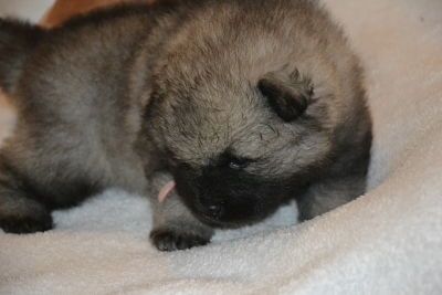 Femelle collier orange, la "crevette " de la portée , images 1 ,2 et 3 le chiot à 1 semaine et 3 jours , image 4 elle a 2 semaine et 1 jour